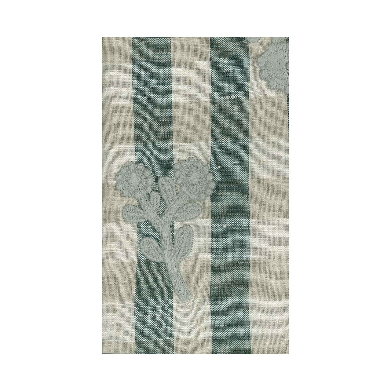 森の空気が伝わってくるようなブロック チェックの生地に刺繍をのせました。