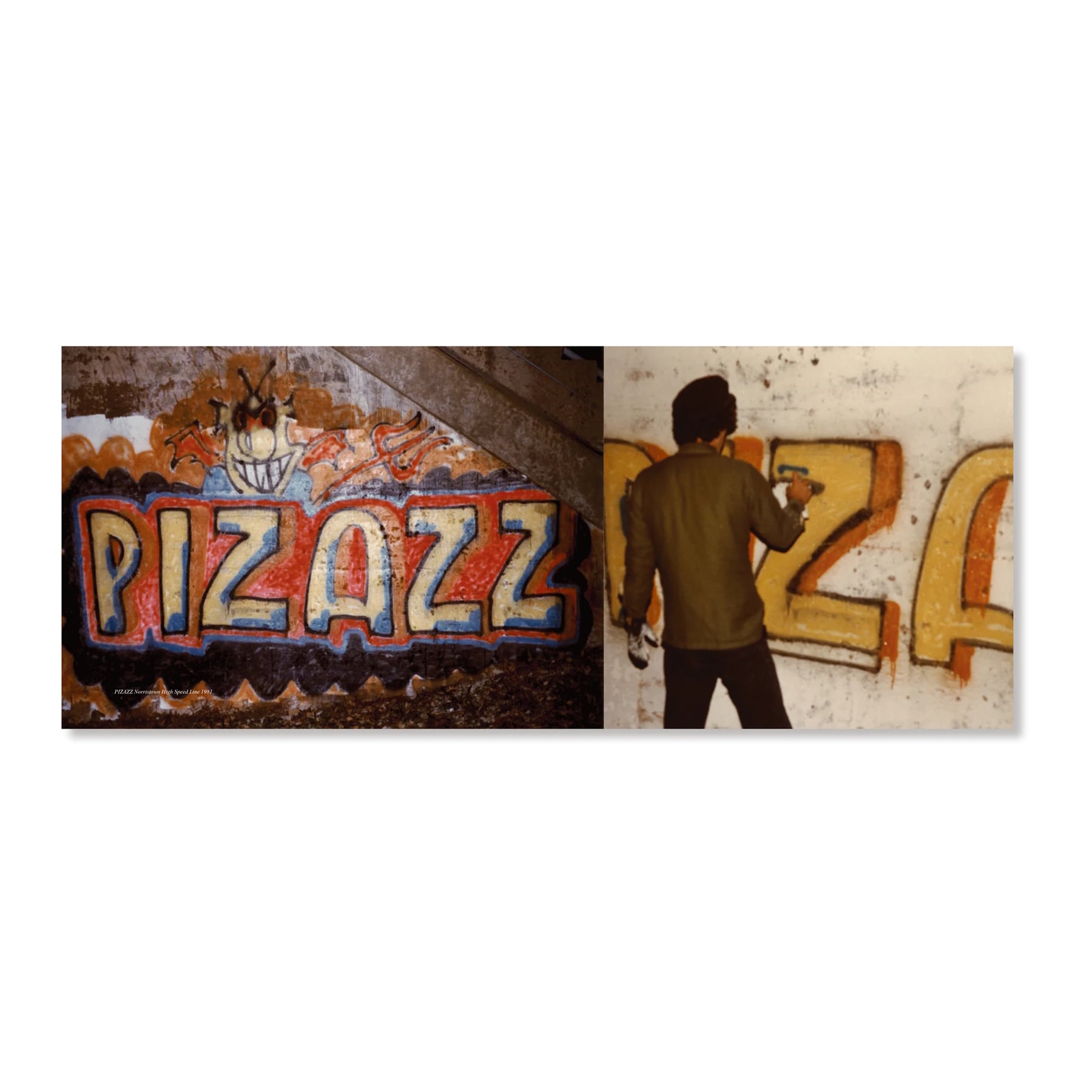 この写真集『PHILADELPHIA SCHOOL OF MUSIC &ART』はスティーブンの古くからの友人、ジョン・コフィーが1980年から1983年までの間、フィラデルフィアで夜ごとに繰り広げられていたグラフィティと音楽のシーンを撮影した写真を集めたものです。Mr. BLINT(aka Jhon Coffey)やESTRO、PIZAZZその他のライター達のスローアップやタギング、トーキングヘッズやザ・クラッシュ、ディーヴォ、ラモーンズなど、パンクロックの黎明期に活動した者たちのステージでの姿が捉えられています。