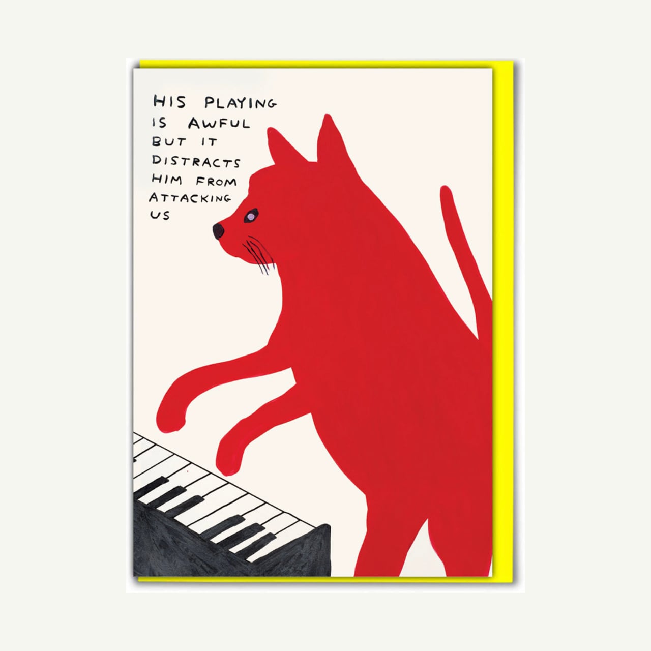 DAVID SHRIGLEY “PIANO PLAYING CAT" BIRTHDAY CARD サイズ:120 x 170mm 生産国:イギリス 素材:持続可能な方法で製造されたFSC認定紙を使用 税込価格:550円