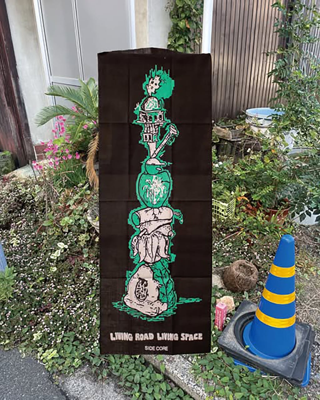 Living road, Living spaceにて展示されているJangoの陶器作品のドローイングをモチーフにした手拭いです。