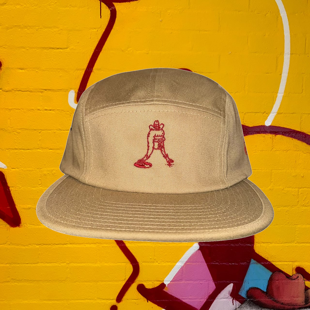 ワタリウム美術掴での「One More」展のために来日したオスジェメオス。兄弟のお揃いで被っていたキャップがいい感じに使い込まれていたのを見て、同じ型で製作しました。試作とサンプル出しを繰り返しつつ「クオリティの高いグッズを」というアーティストの要求に応えた会心の出来。帽子と刺繍のカラーは兄弟の好みの色を選んでもらいました。意外な色合わせがかわいいです。