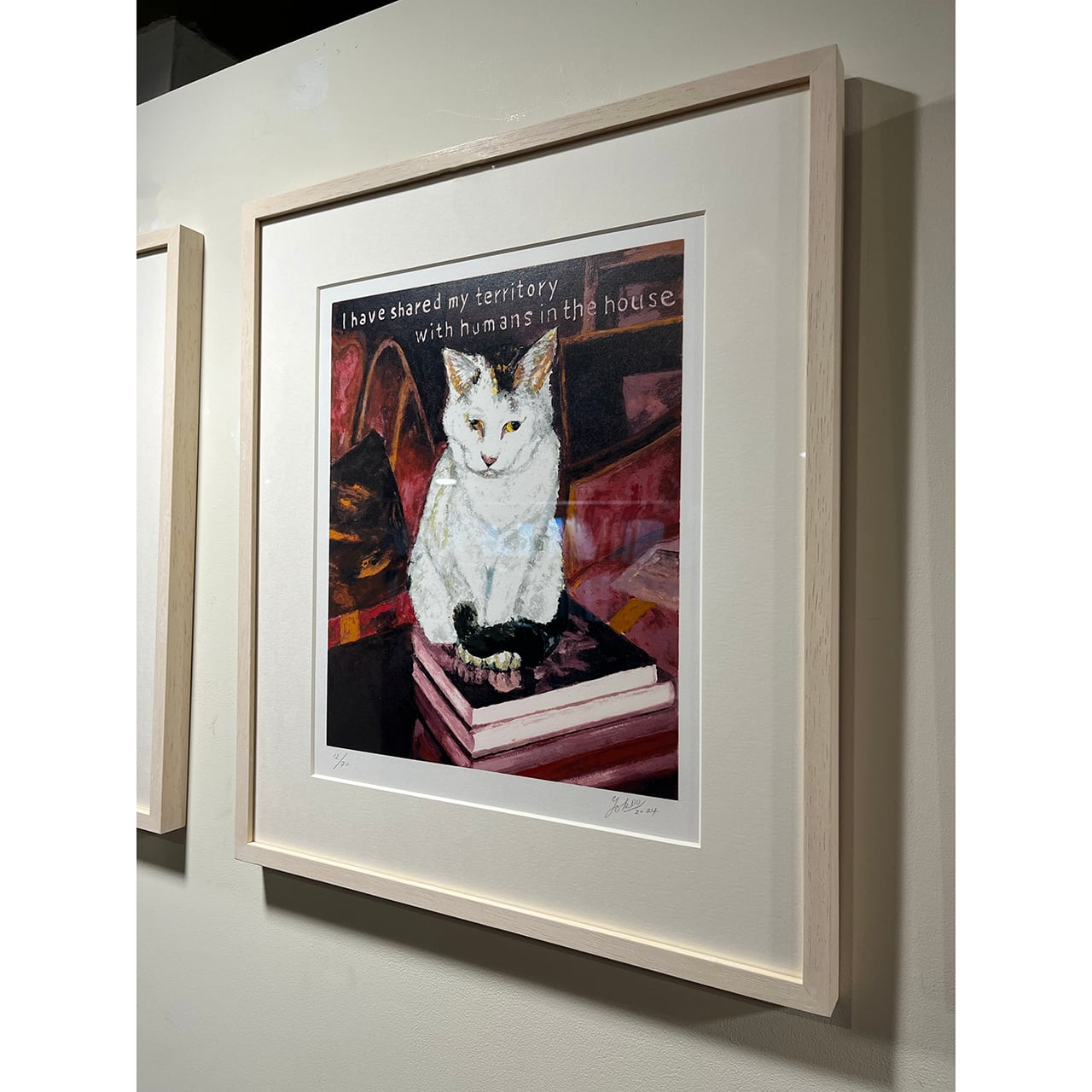 アーティスト横尾忠則に15年にわたり寄り添っていた愛猫タマ。元々野良猫だったタマは、あるときから横尾家の裏庭に居着くようになり、以来15年間、同じ屋根の下で暮らしをともにした。横尾はタマについて「人間臭いし、情がある」猫だったと述懐している。そのタマが2014年にこの世を去って以降、横尾はタマをモチーフとした作品を描き続けてきた。その作品は2020年に91点のキャンバス作品として発表されたが、今回発表されたシルクスクリーンのシリーズは絵画制作と並行して進められていたもの。制作は古くから横尾のシルク作品を出版してきた岡部版画工房が手がけた。