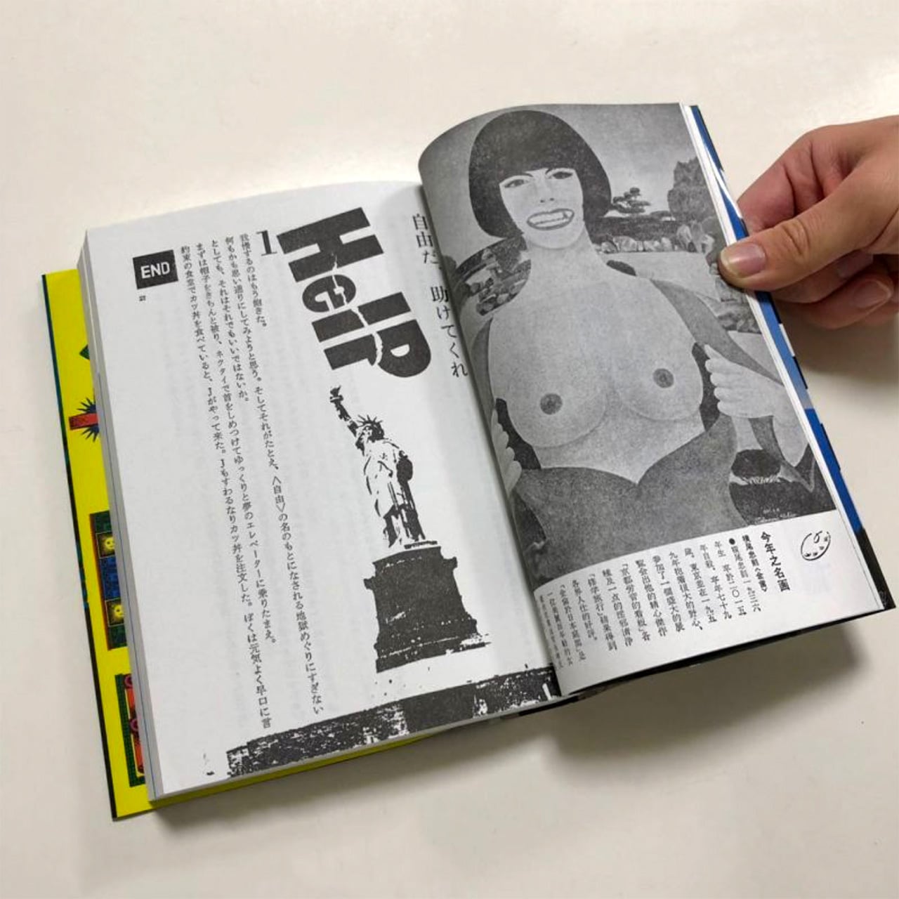 その初版本のブックデザインは横尾忠則が手がけています。単なる装丁家としての仕事の域を越え、寺山修司のテキストの合間には横尾忠則のコラージュ作品が多数収録され、文芸書の枠を超えたアートブックともいえる蔵本。