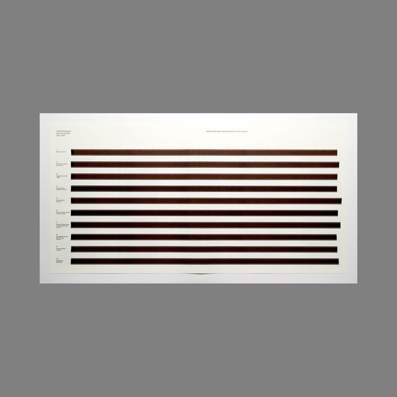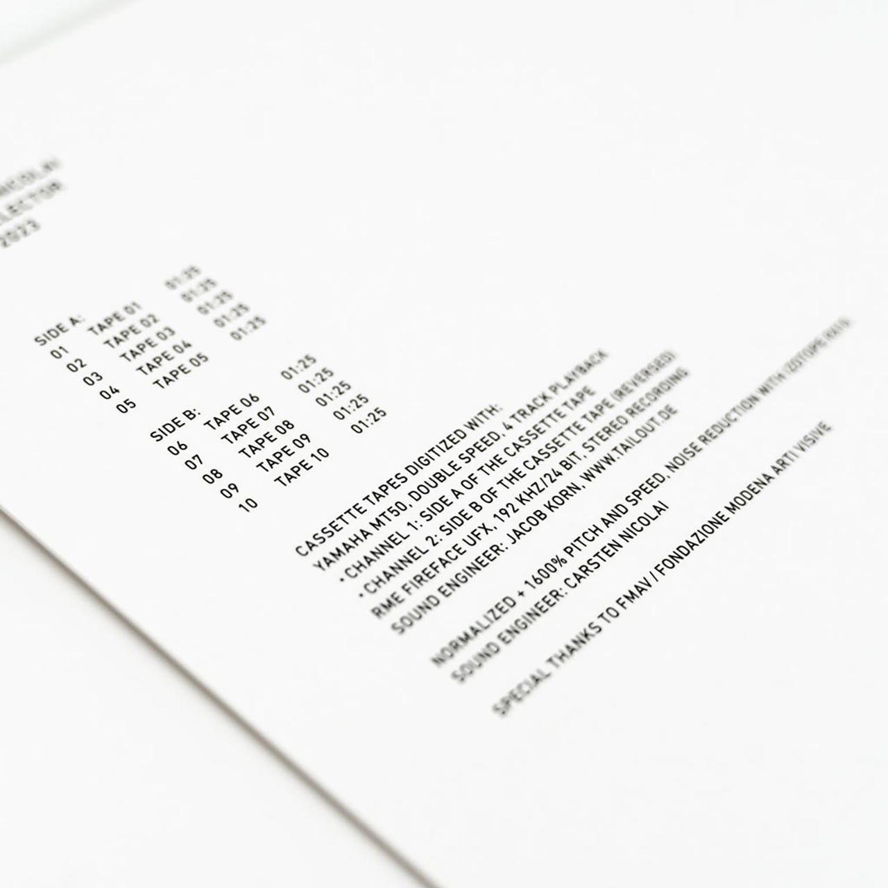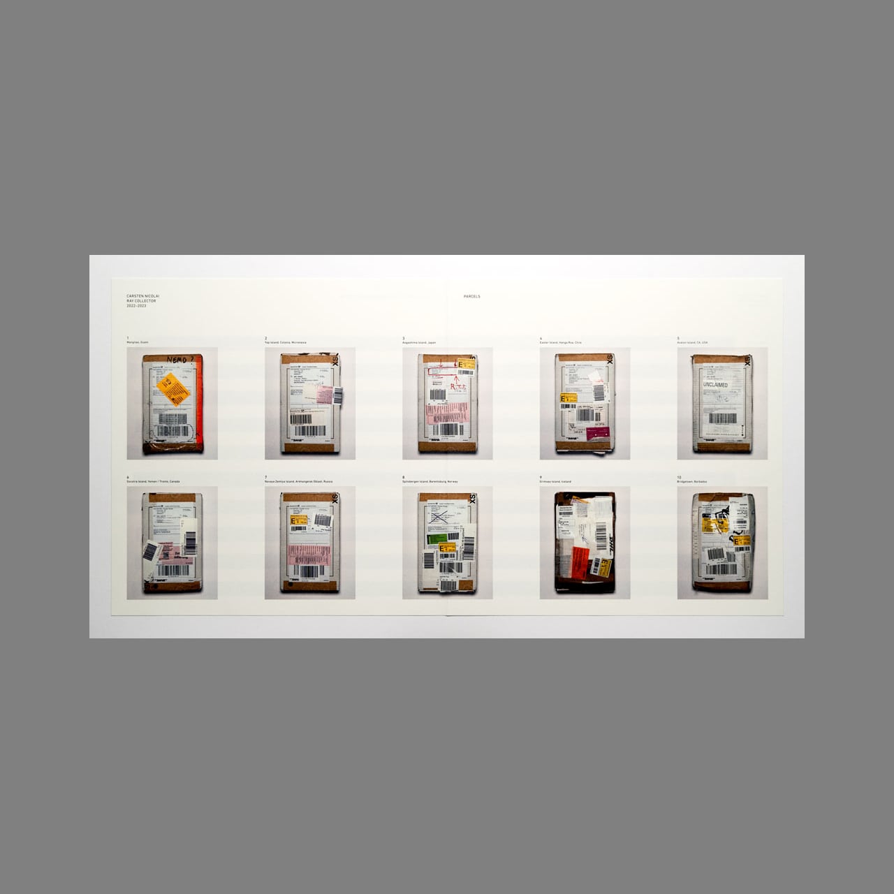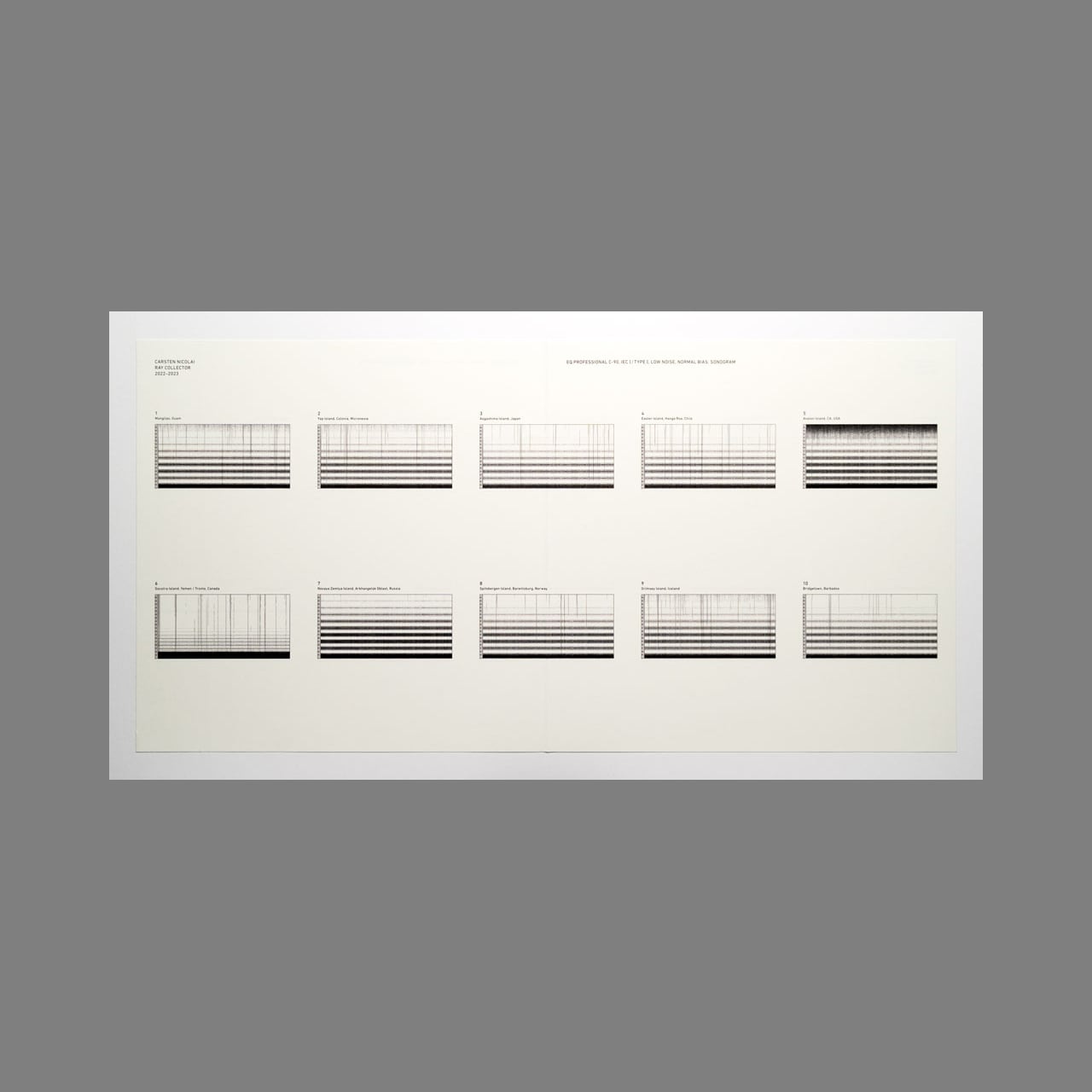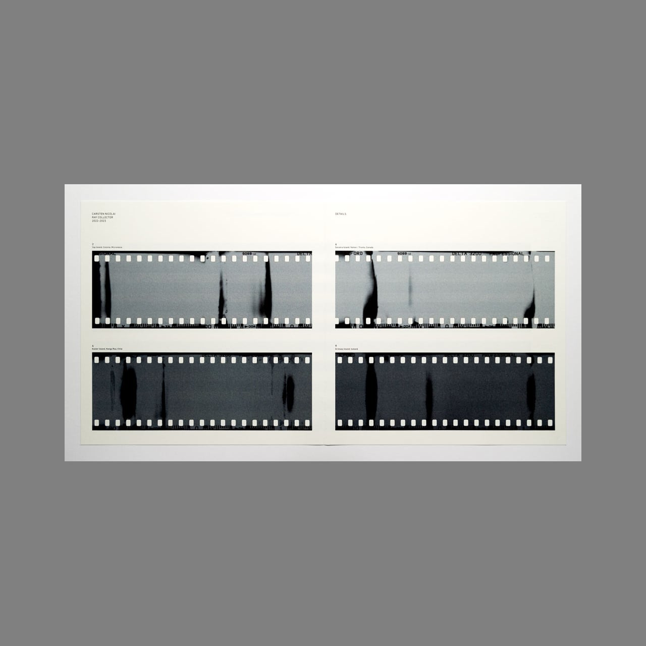 2022年2月、カールステン・ニコライはベルリンから10個の小包を様々な宛先に発送しました。各小包には、空の磁気テープカセット、イルフォード デルタ 3200 ISO 1000 モノクロフィルム、コダック ISO 800 カラーネガフィルムが同梱されていました。そして受取人は小包を差出人に返送するという構想でした。各小包に収められた磁気テープと感光性フィルムは輸送中に電磁波と放射線に曝されるよう意図されていました。差出人へ返送された後、フィルム/テープは現像/デジタル化され、可視化と可聴化が施されました。本作には音源に加えブックレットとして可視化された画像も収録されています。