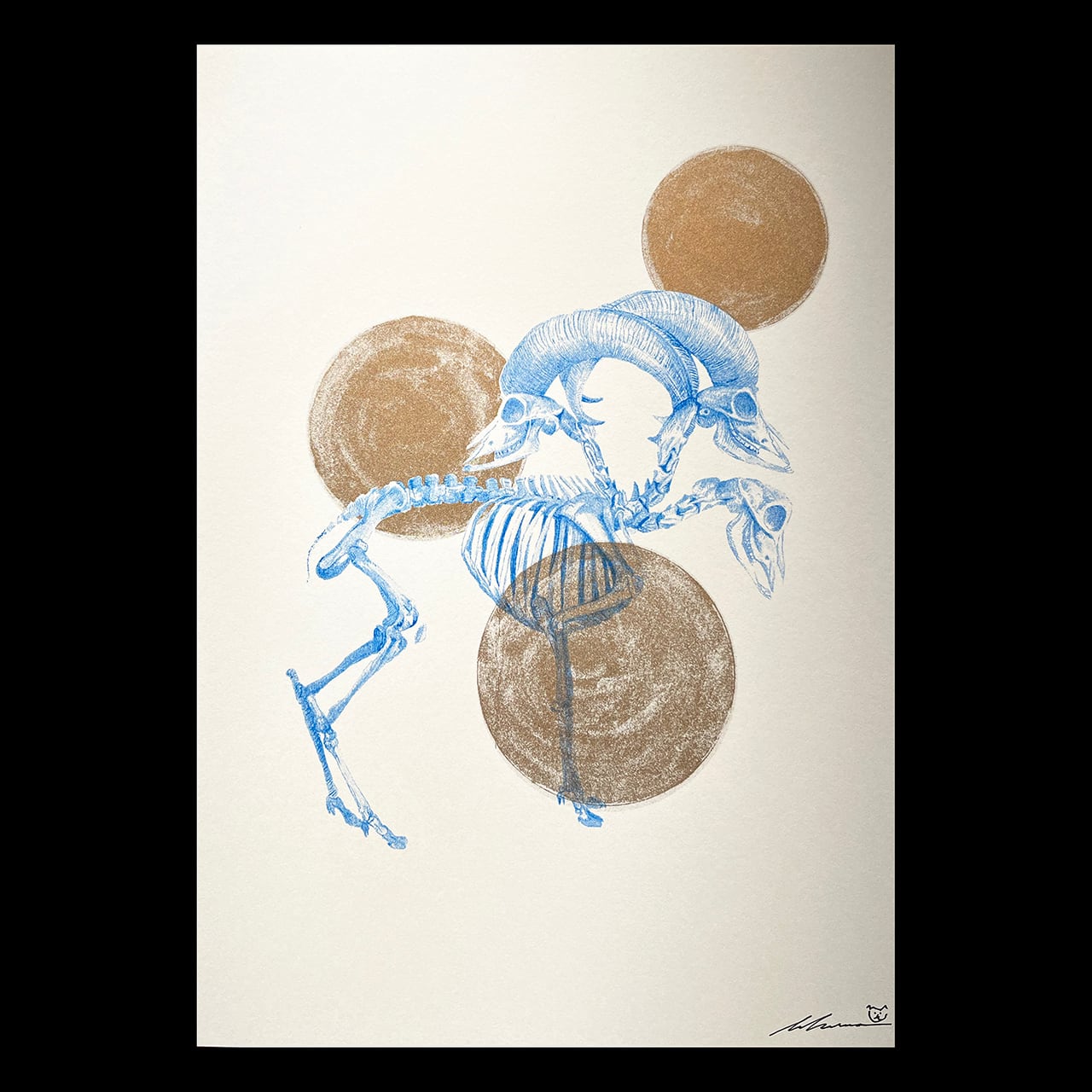 さわひらき:Skelton Eats Dreams(リソグラフ) サイズ:210 X 297mm サイン入り 税込価格:3,300円 さわひらきによる2025年の新作リソグラフィック・プリント