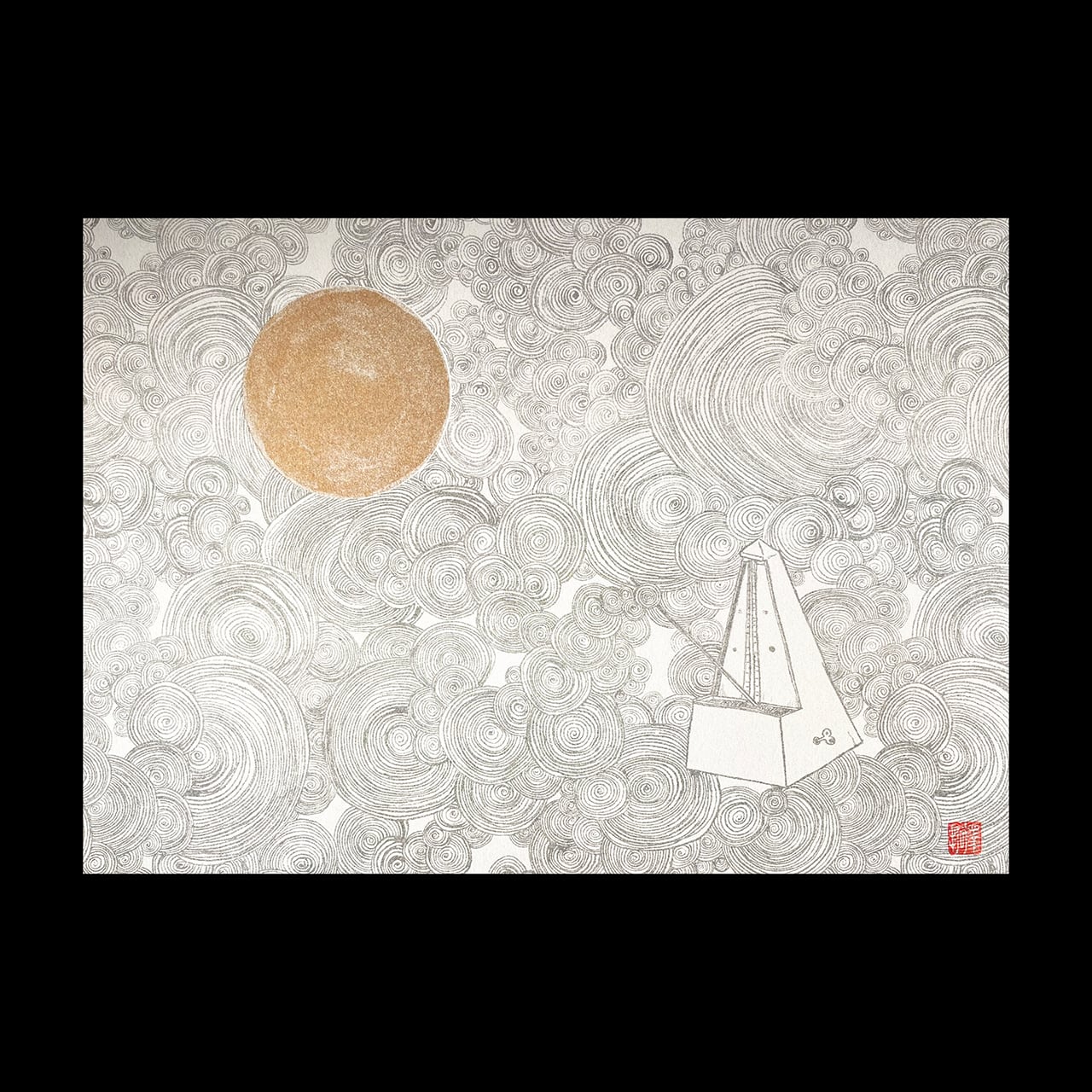 さわひらき:Metronome with Moon(リソグラフ) サイズ:210 X 297mm サイン入り 税込価格:3,850円 さわひらきによる2025年の新作リソグラフィック・プリント