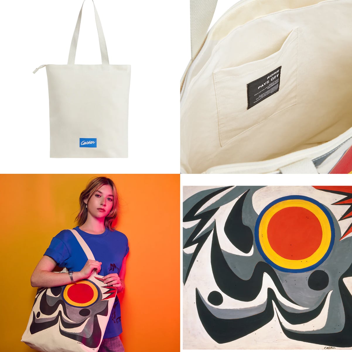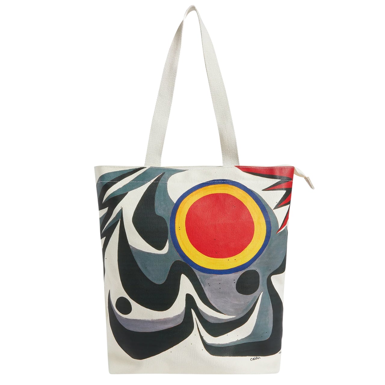 厚手のコットンキャンバス製トートバッグには、カルダーの「サンパウロ」がプリントされ、背面にはカルダーのサインがスクリーンプリントされています。