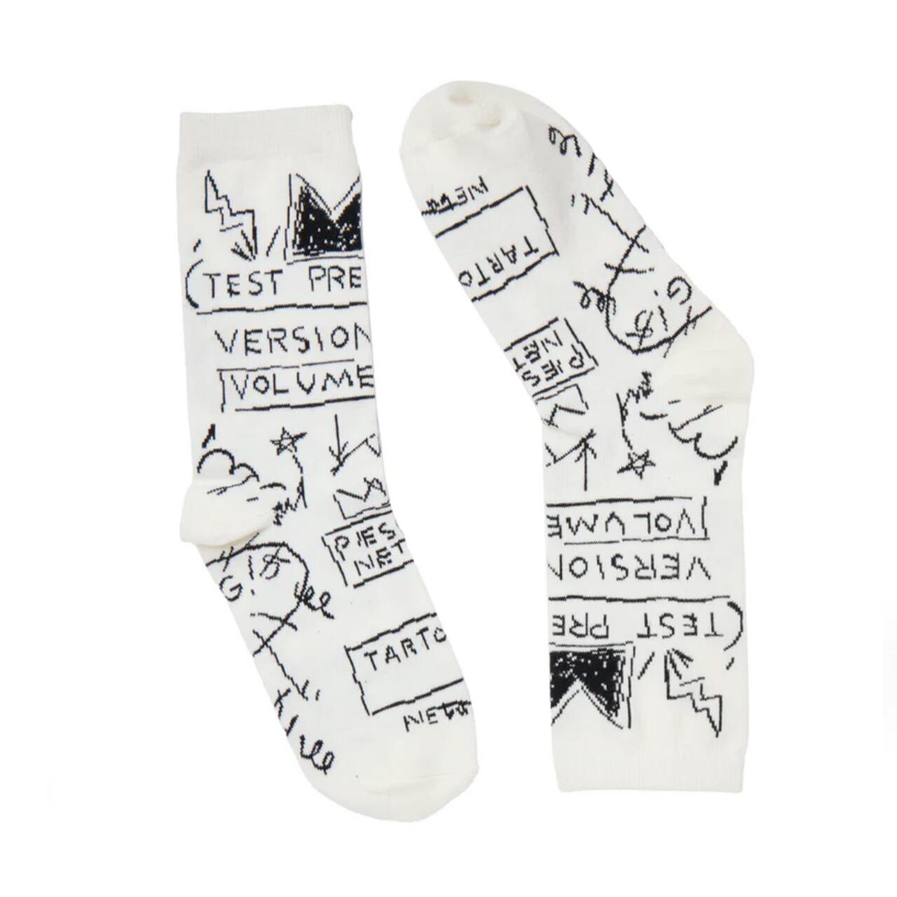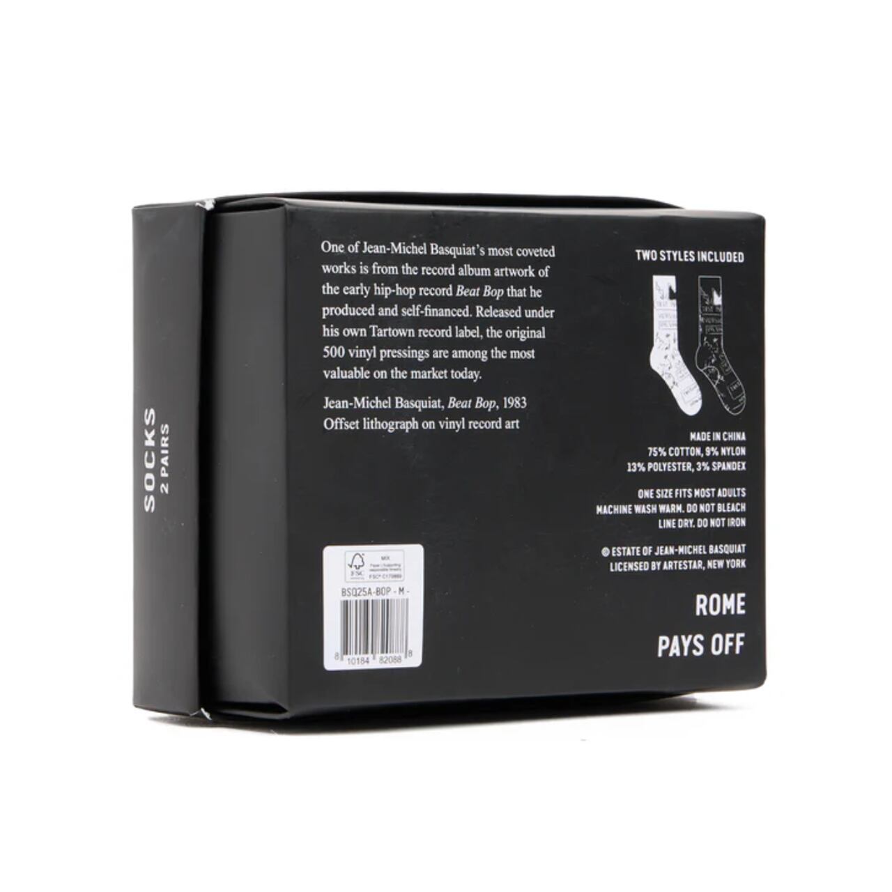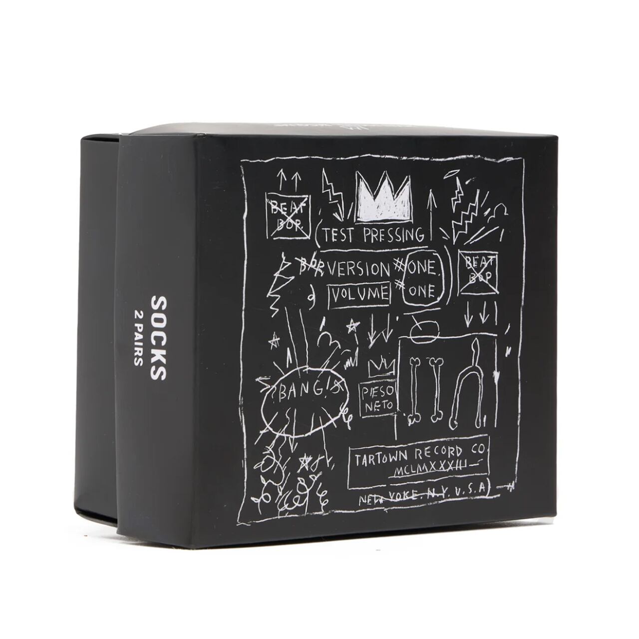 このボックスセットには、ジャン=ミシェル・バスキアの象徴的な「ビート・バップ」アートワークをあしらった、ふくらはぎ丈のクルーソックスが2足組で含まれています。