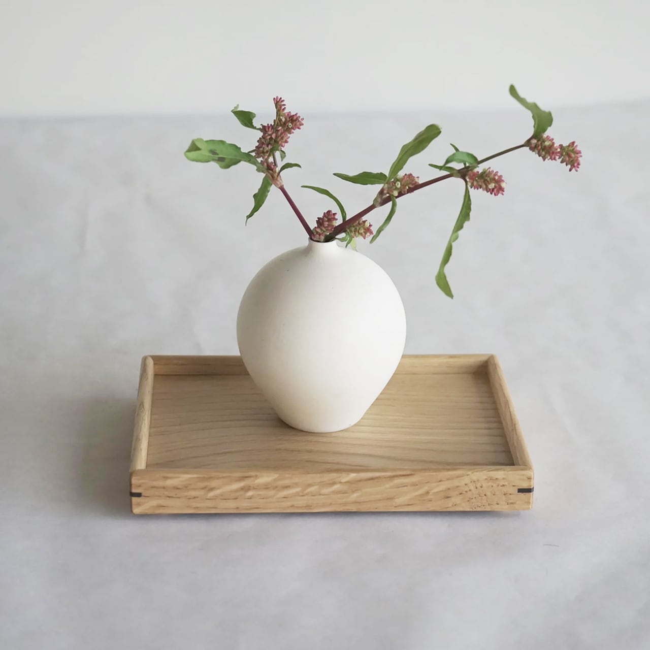 底に仕込んだ脚で少し浮遊感があり、持ち手にはさりげなく面取り加工を施し、手に馴染みやすいデザインです。