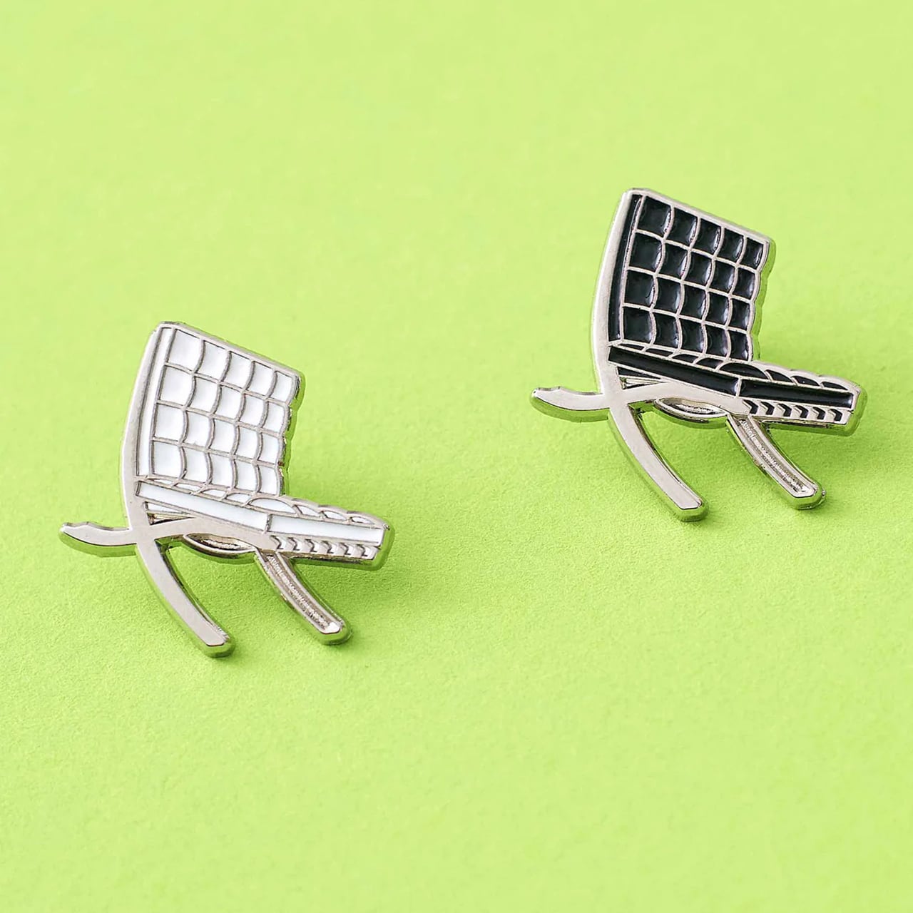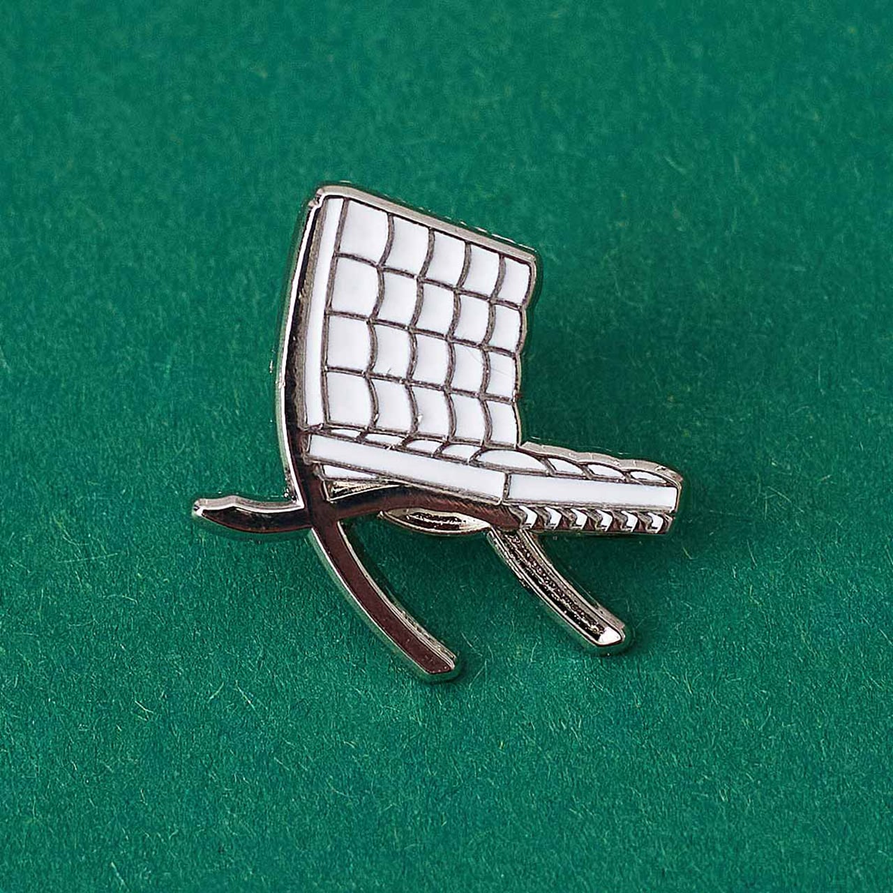 モダンなエレガンスとシンプルさを象徴するアイテム。 ミース・ファン・デル・ローエの代表的アイコンともいえるバルセロナチェアをモチーフにしたメタルピン。 サイズ:17.7 x 19 mm 世界中の多くの美術館や文化施設とコラボレーションし、アートや都市の象徴的なシンボルを金属とエナメルを駆使し、細部にまでこだわって丁寧に作られピンバッジに落としこんだエストニア発のブランド、Pinpinpin.itの商品です。