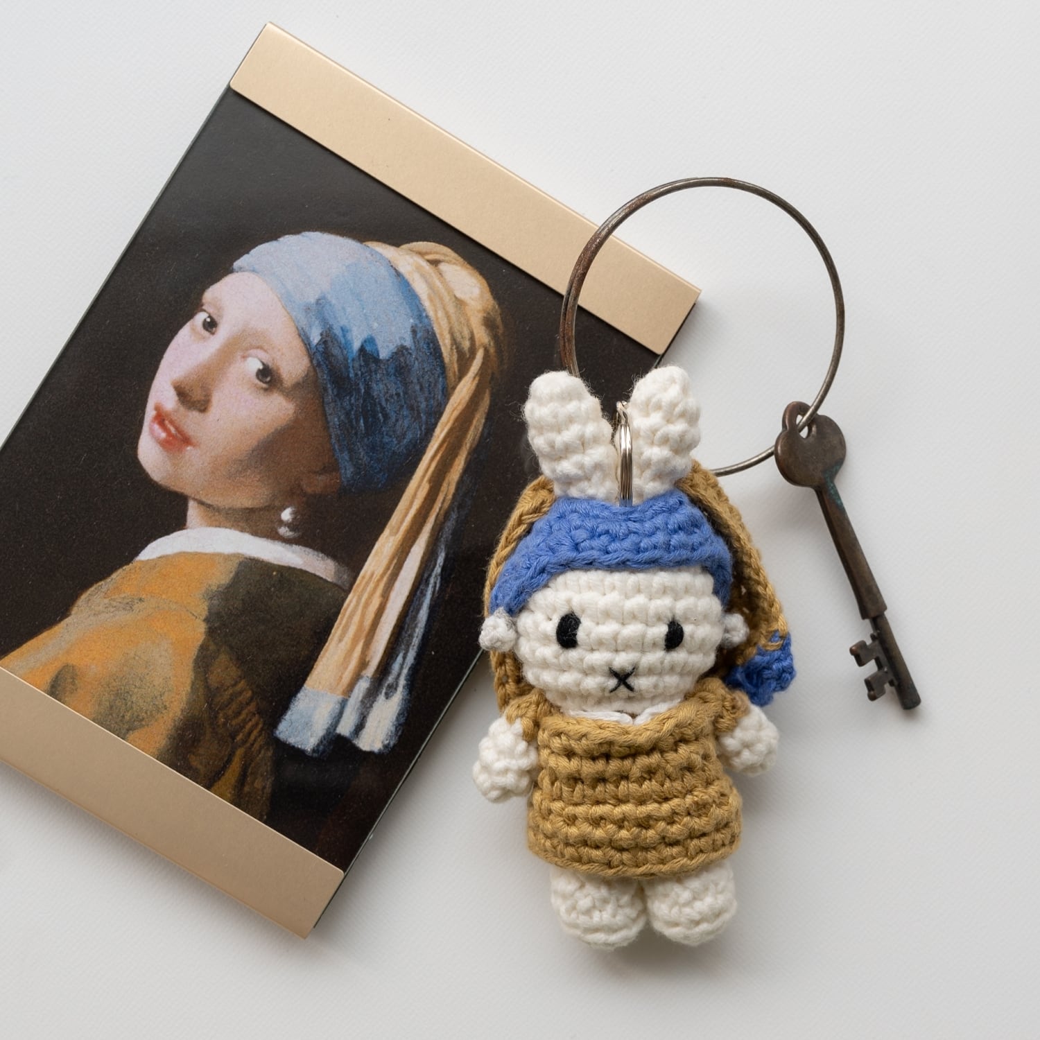 フェルメールの名作「真珠の耳飾りの少女」の手編みのキーリング。