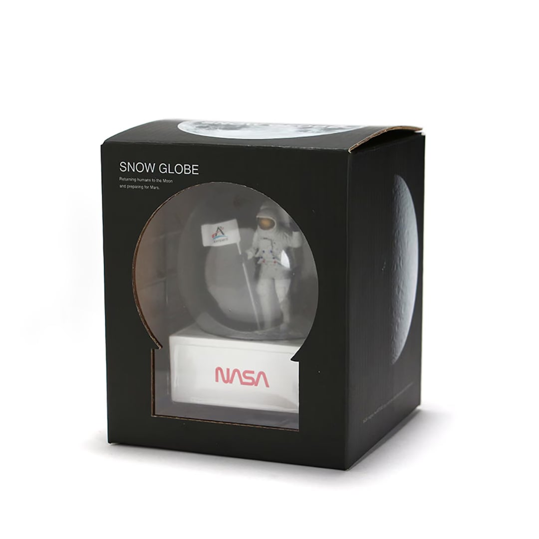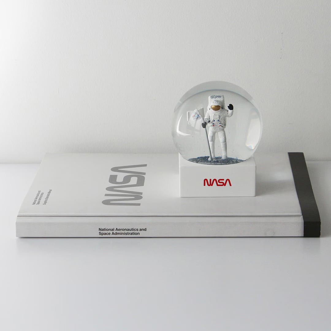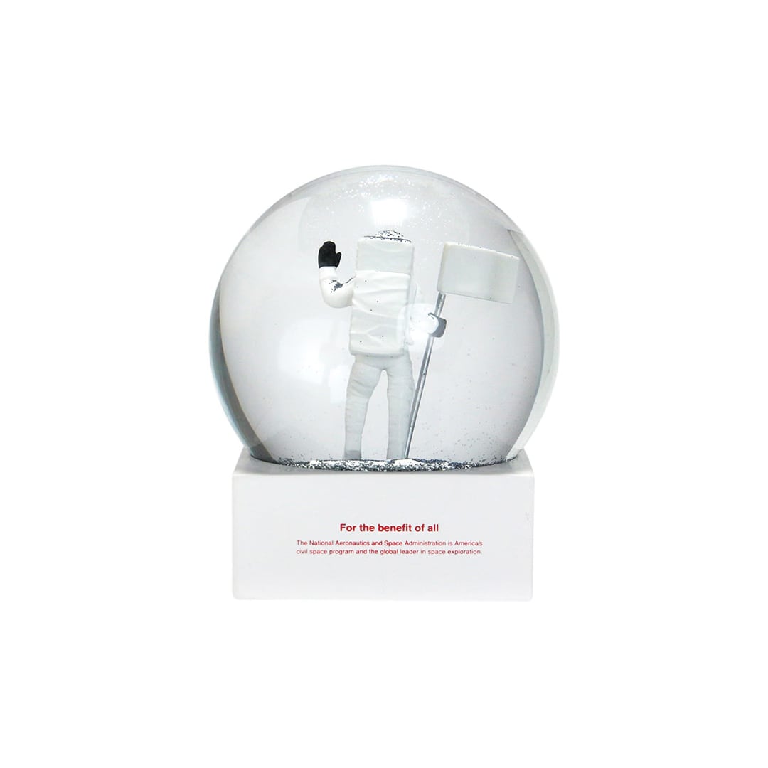 月面に立つ宇宙飛行士をモチーフにしたスノードーム。