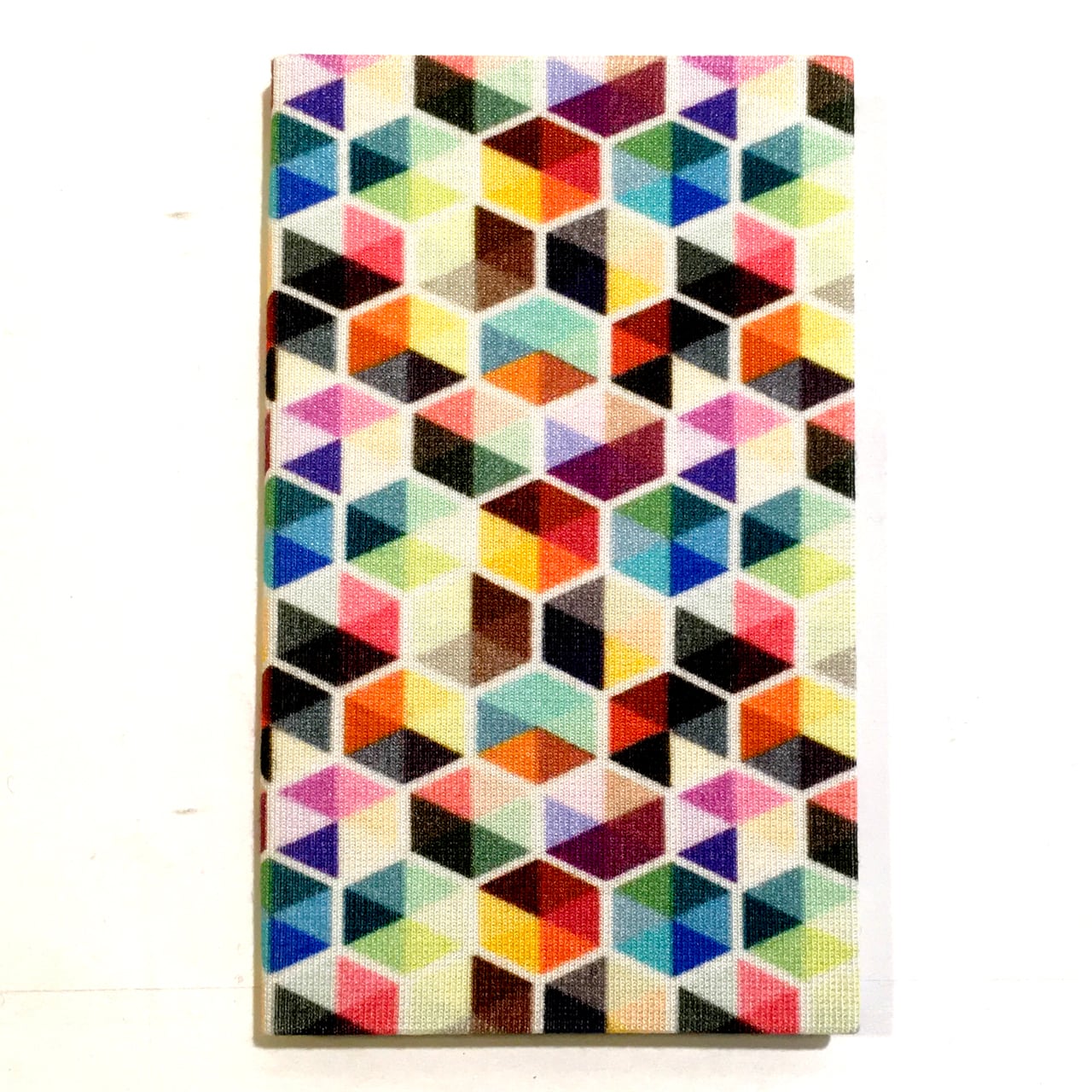 商品名:ROKKAKU GEOMETRICAL COLOR BLENDS 価格:2,182円+税 カラフルな六角形のパターンがプリントされたベルベットタッチの生地を用いたダイアリー 仕様:しおり、小口三方金、切り離し式コーナーチップ 内容:年間カレンダー、月間/週間見開きスケジュール、 国別国際通話コード表、 ID & パスワード記録欄、 アドレス帳、メモ欄、 巻末に「2027年の年間カレンダー」収録 サイズ:135 x 80 mm