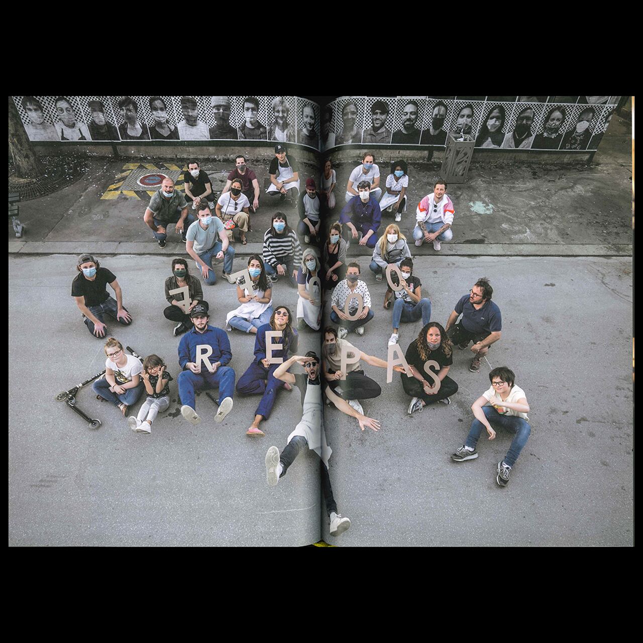 『レフェットリオ:37の廃棄食材対策レシピ』は、スーパーマーケットや商業レストランなどから出る廃棄食材の問題、つまり食品貯蔵室や冷蔵庫の奥底に追いやられた食材たちで作られた料理のビジョンを中心に、37名のシェフやアーティストによるレシピを集めた料理写真集。 同時にこの本は、非営利団体「Food for Soul」の運営するマドレーヌ広場にある無料レストラン"Refettorio Paris"のプロジェクトを記録したドキュメントにもなっています。JRとパートナーであるプリューヌ・ヌーリーはこのレストランのためのプレートとインテリアを制作し、自らもレシピを提供。JRらの他にもパリ16区のレストラン「アストランス」の共同オーナーシェフを務めるパスカル・バルボ、21世紀のパティスリー界を先導するショコラティエ/パティシエのピエール・エルメ、映画監督のアニエス・ヴァルダらの料理人からアーティストまでが参画しています。