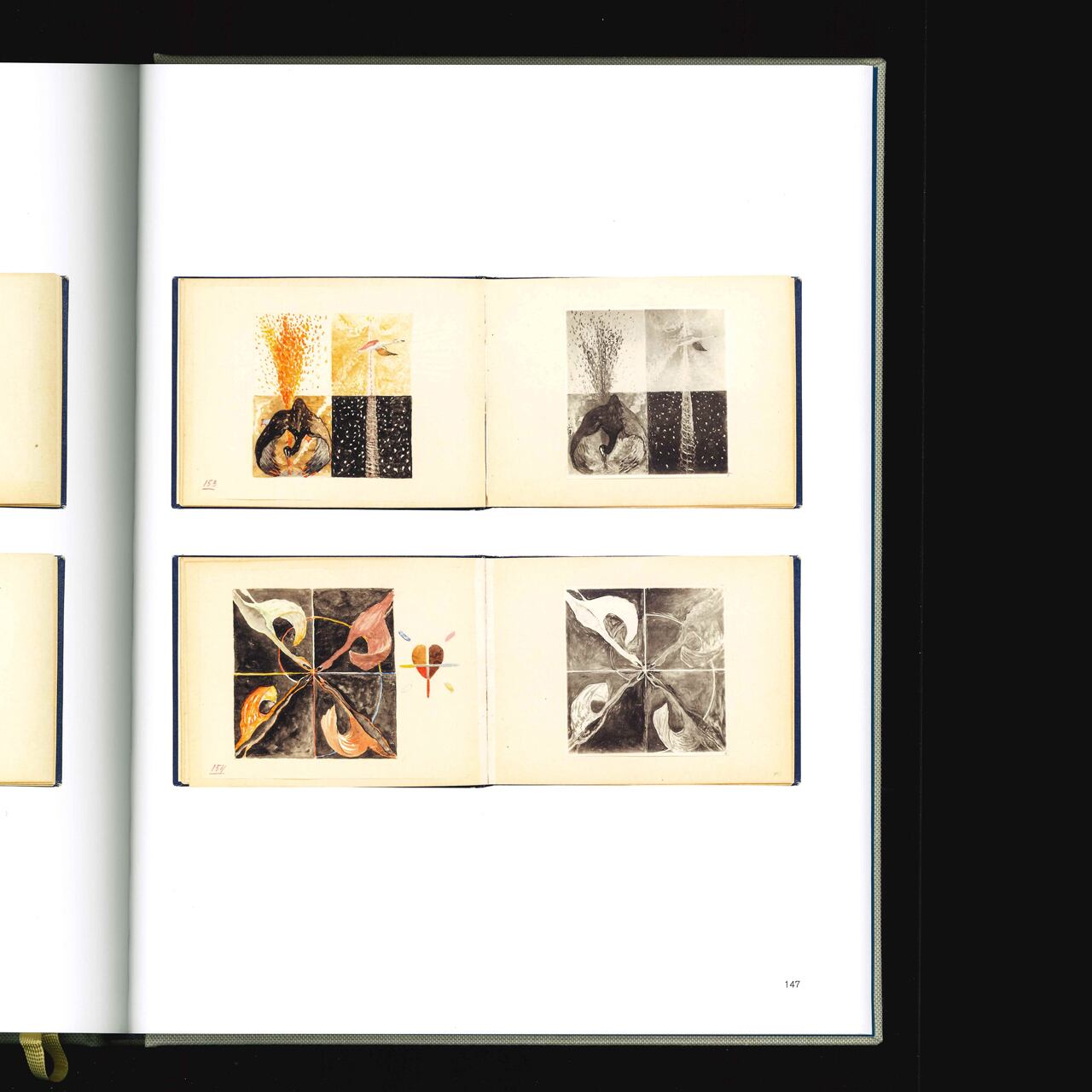 カタログ・レゾネの第3巻には「寺院のための絵画」のスタディとして作成されたクリントのスケッチとドローイング、メモが収録されています。アーティストは彼女の友人や協力者にもその作品をより見やすい形式で見せられるように、常にこれら「青表紙のスケッチブック」を持って旅行しました。
