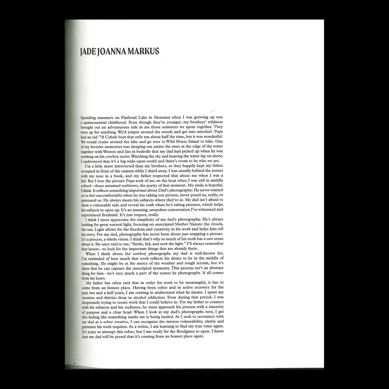 (時は語らず、運命を変えるのみ)」をサブタイトルに引用し、人間の「変わろうとする力」そしてそれが意味する「自由」を取り上げている。ブルース・ウェーバーの長年の友人である写真家カート・マーカスは、長年にわたり撮影した彼の子供たちの写真と子供たち自身の言葉を紹介する。ダイアナ・ヴリーランドの『ヴォーグ』誌やアンディ・ウォーホルの『インタビュー』誌で活躍したフランス人写真家パトリス・カルメットは、70年代と80年代の退廃的なイメージを共有する個人的なアーカイブを公開。またアメリカのリアリズム絵画の巨匠、ジョン・コッホの絵画の紹介に加え、ブルース・ウェーバー自身の撮影による、世界を変えるためにひたむきに努力し、常にインスピレーションを与えてくれるパワフルな女性たちのフォト・ストーリーを掲載している。