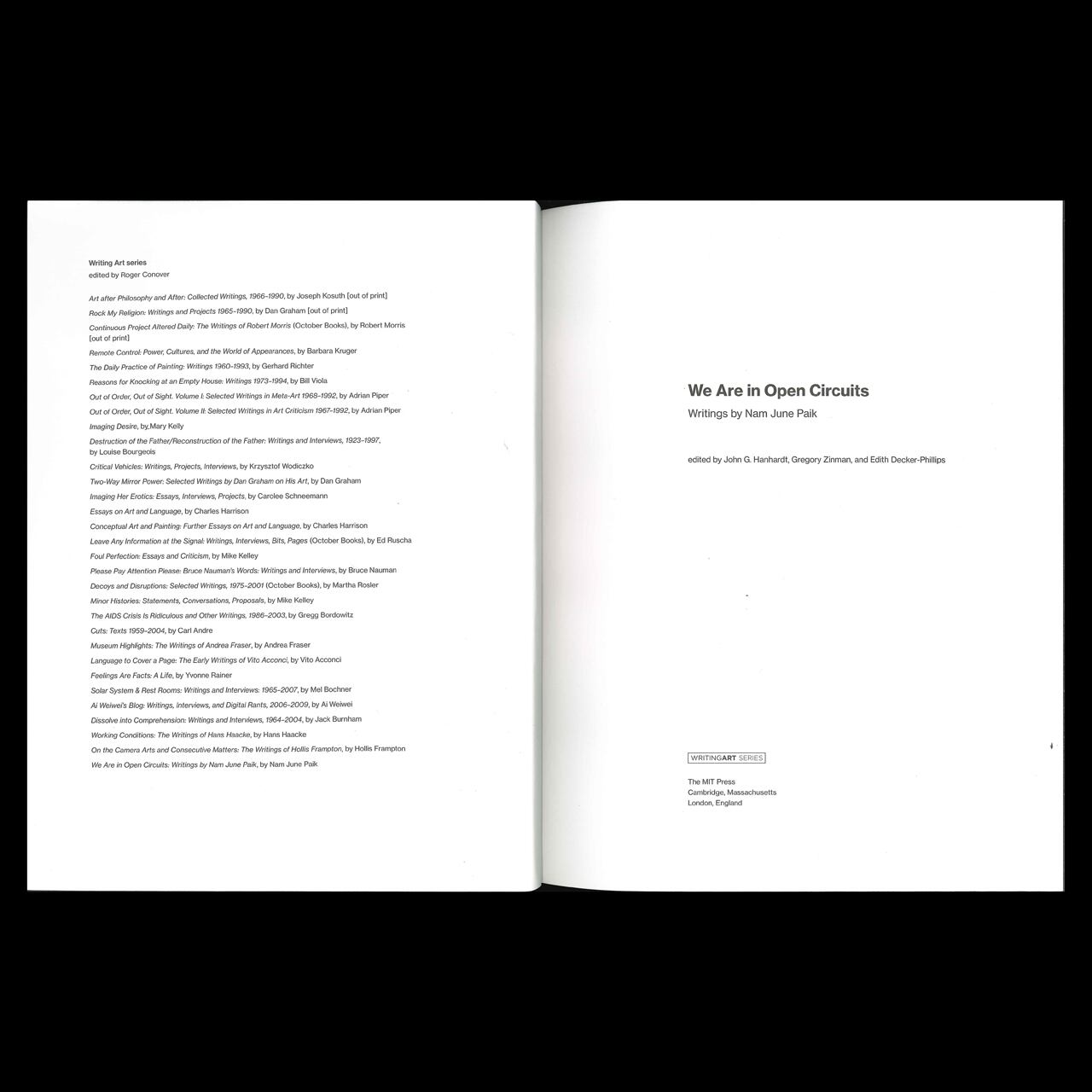 ナム・ジュン・パイクの全キャリアから集められた、その多くが絶版または未発表のエッセイ、プロジェクト計画、書簡などを集成した一冊。
