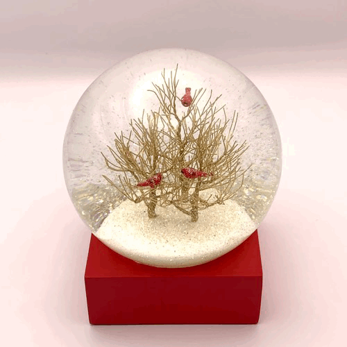 3本のゴールドの木に、真紅のカージナルスが訪れ、この季節ならではの優雅なひとときを演出します。