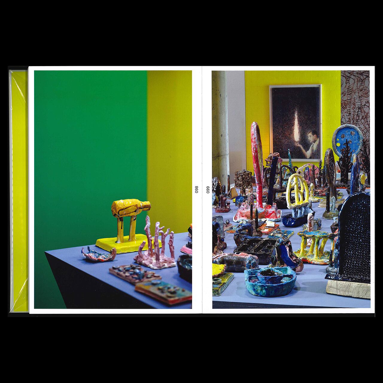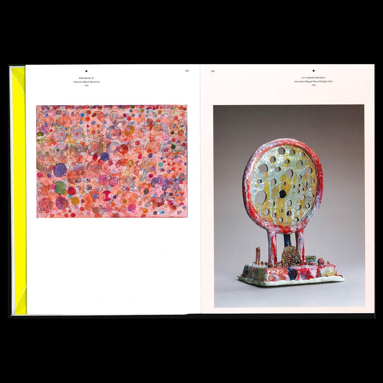 本書の⾒どころのひとつは、2022年にワタリウム美術館で開催された個展「梅津庸⼀展|ポリネーター」や、⾋居アネッ クスでの2⼈展「6つの壺とボトルメールが浮かぶ部屋 梅津庸⼀ + 浜名⼀憲」の展⽰⾵景を写真家の畠⼭直哉が撮影し た作品図版ページ。展⽰会場の什器や壁⾯の⾊彩など空間構成も⼿掛ける梅津の世界観を140点以上のヴィジュアルで伝えます。また評論⽂や、インタビュー、作家⾃⾝のエッセイといったテキストでは梅津の幅広い活動についても詳しく分析し、資料としても極めて重要な性質を有しています。多⽤な活動をつなぐ梅津の作家性と、未来の展開を伝える1冊となりました。