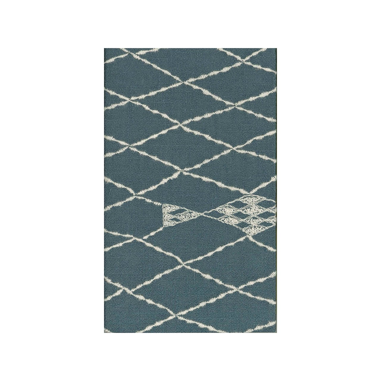 揺らいだ菱形の波間に魚が溶け込む ように描かれたテキスタイルです。