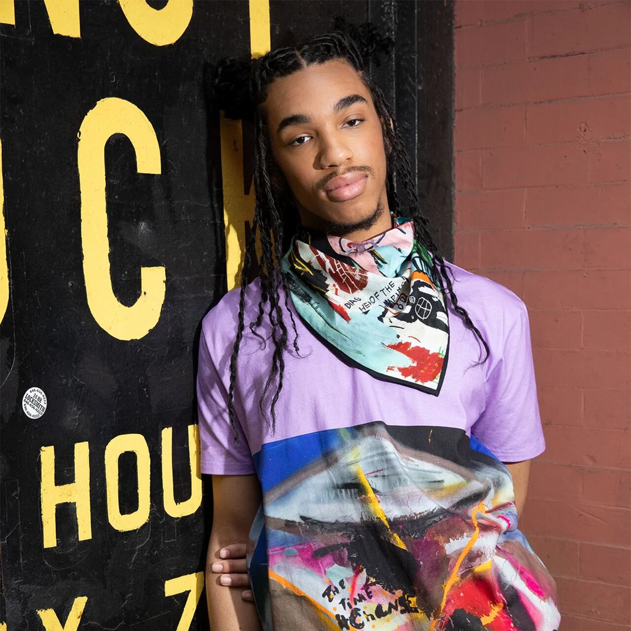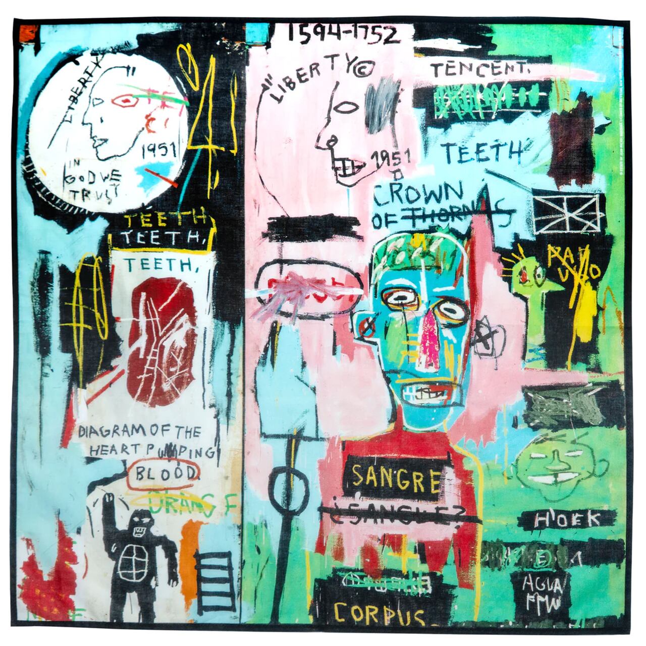 バスキアのアートワークがイタリア語で描かれたバンダナ。