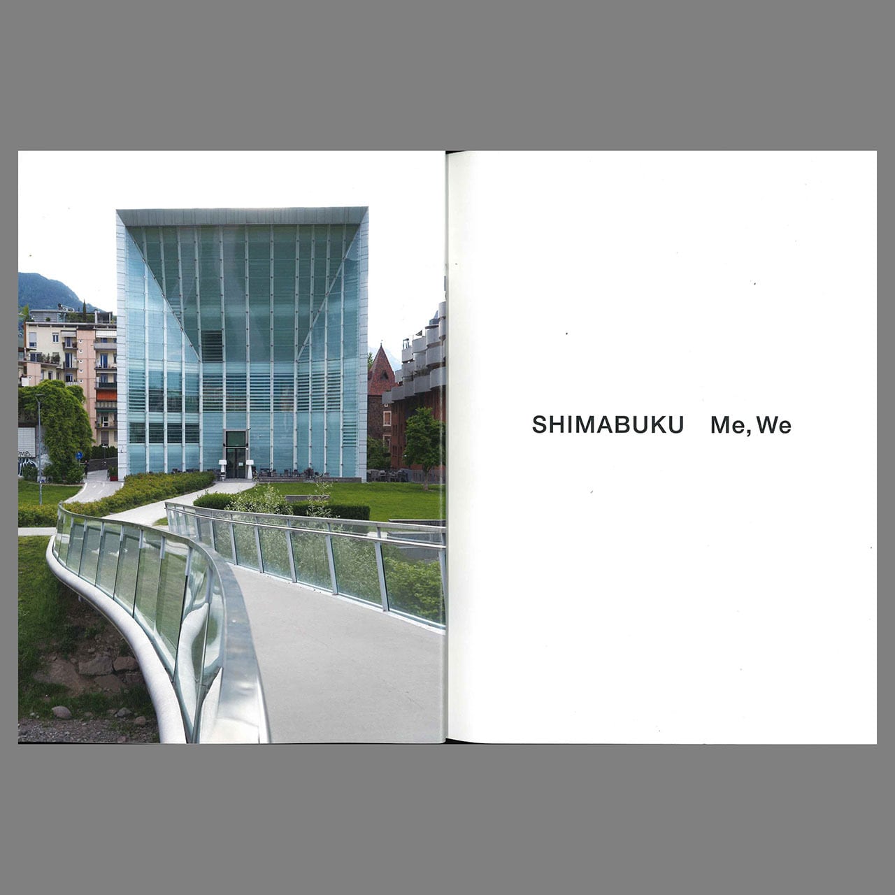 2023年5月から9月までイタリア北部の都市、ボルツァーノの美術館 ”MUSEION” で開催された島袋道浩の個展『Me, We』の展覧会図録。同展では1991年〜2023年までの島袋の作品約40点が展示された。美術館のメイン展示室2室を使った構成は、初期のパフォーマティブな作品から映像作品、インスタレーションまでを端正な空間の中で見せるものとなった。