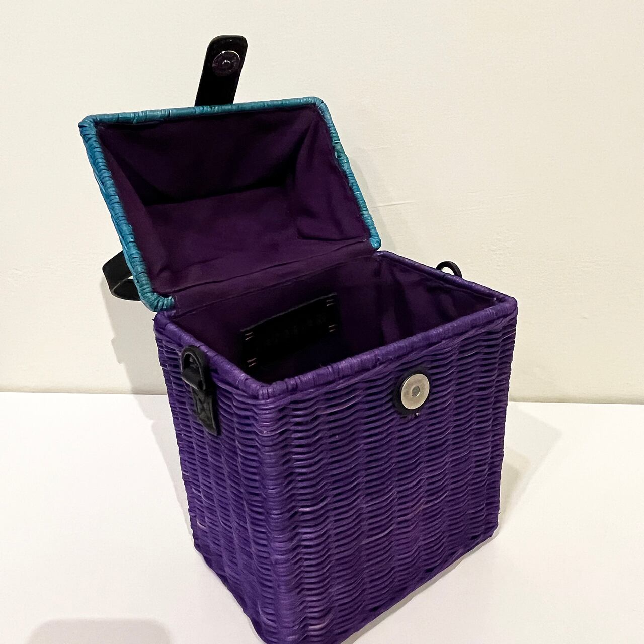素材:籐、レザー、綿(内張)、マグネット(ファスナー)